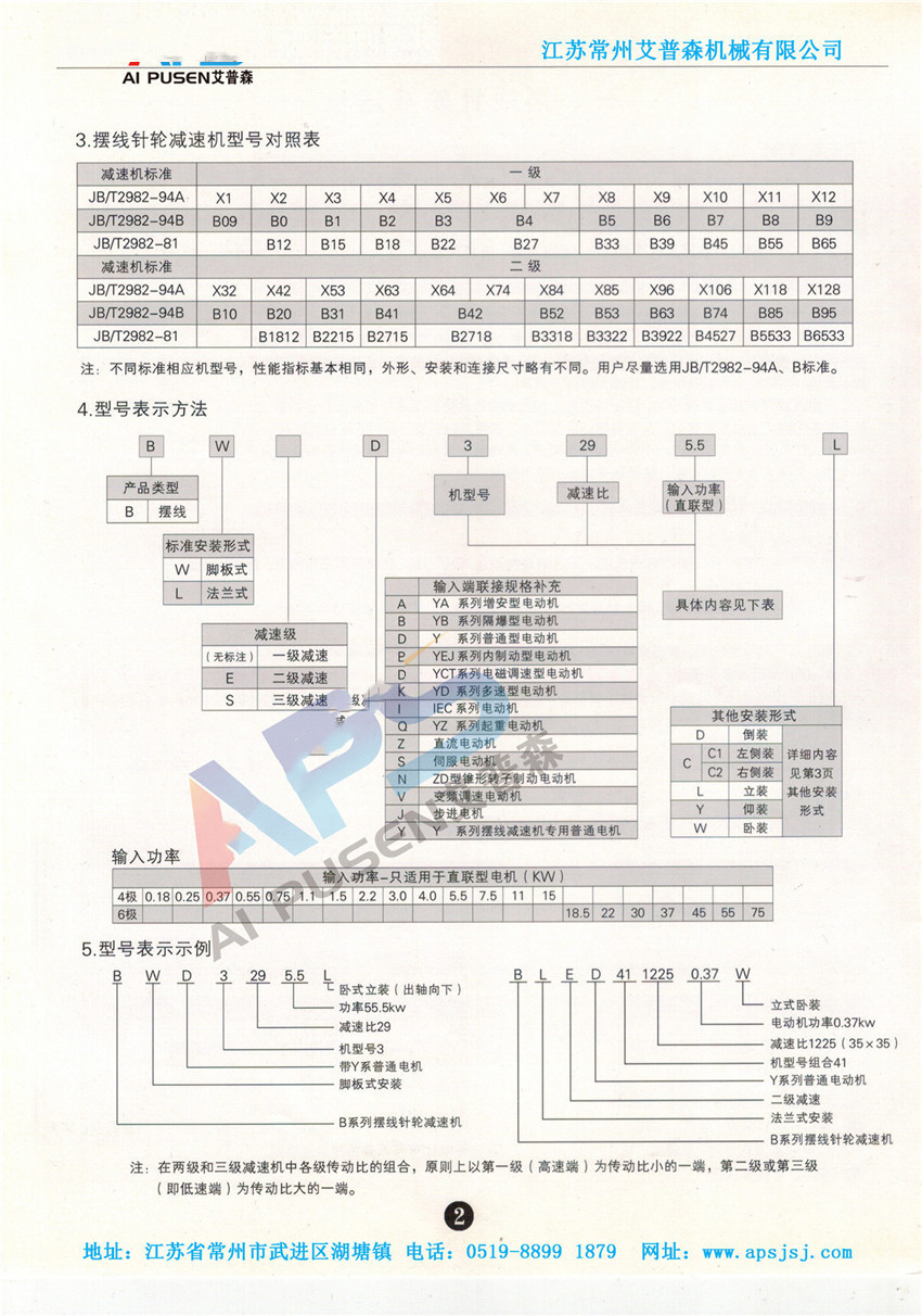 BWD系列臥式擺線針輪減速機(jī)共用以下幾種型號供用戶選型使用: